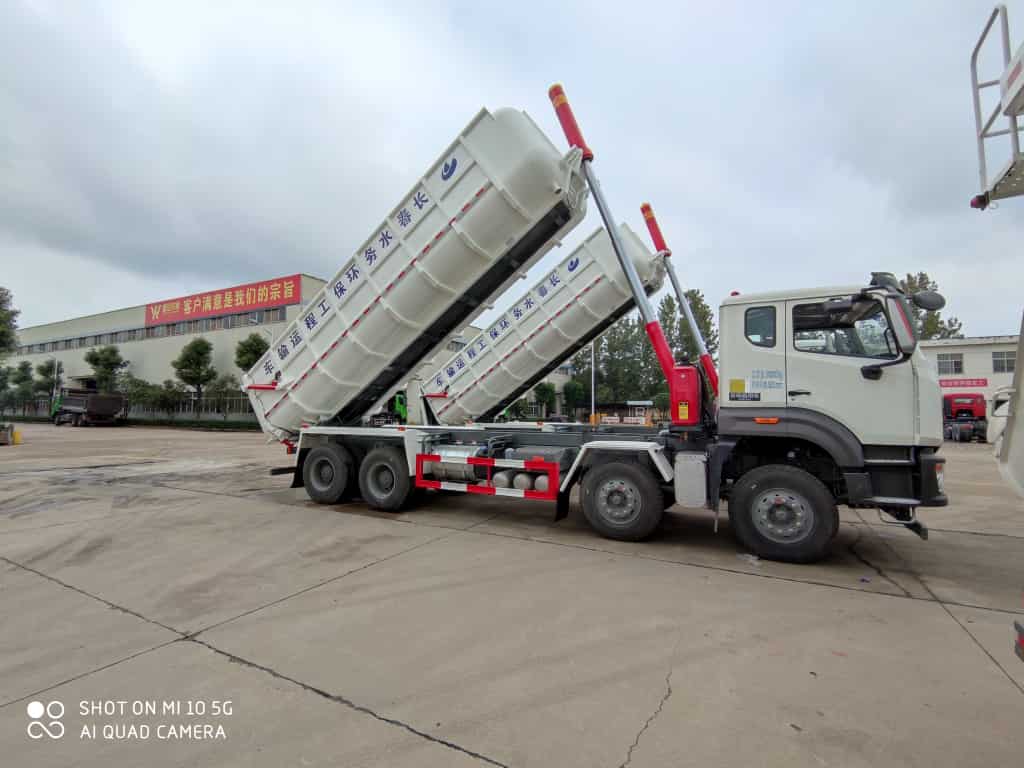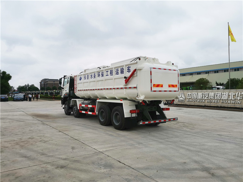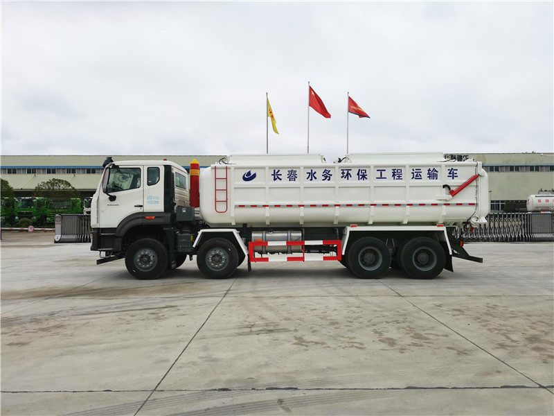 吉林長春水務局提三臺污泥運輸車,車子量身定做,適應北方低溫天氣,防止密封圈粘上凍泥導致后蓋密封不嚴,大大提升車輛極寒天氣運輸作業效率。銷售熱線:07223309966
