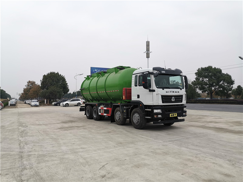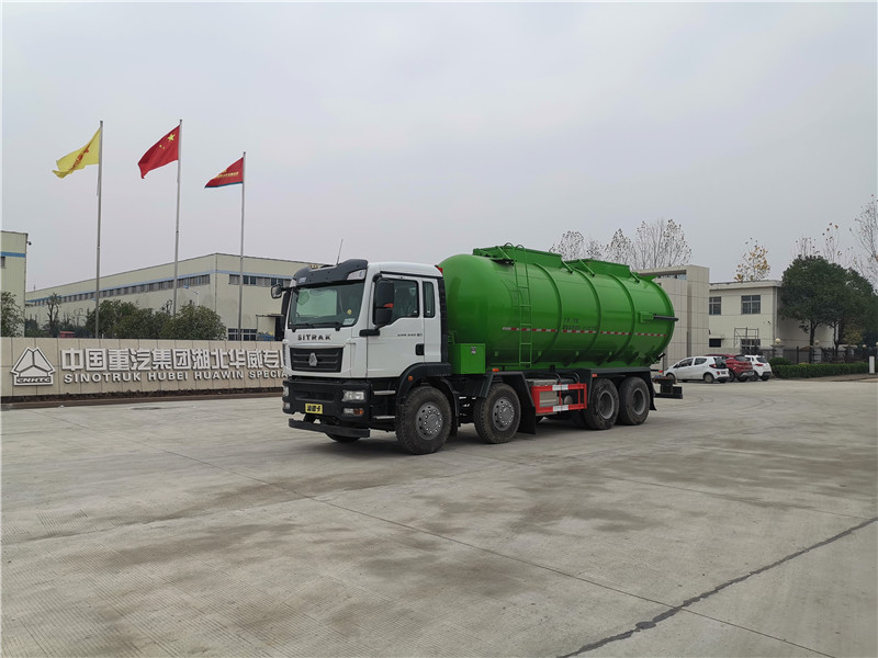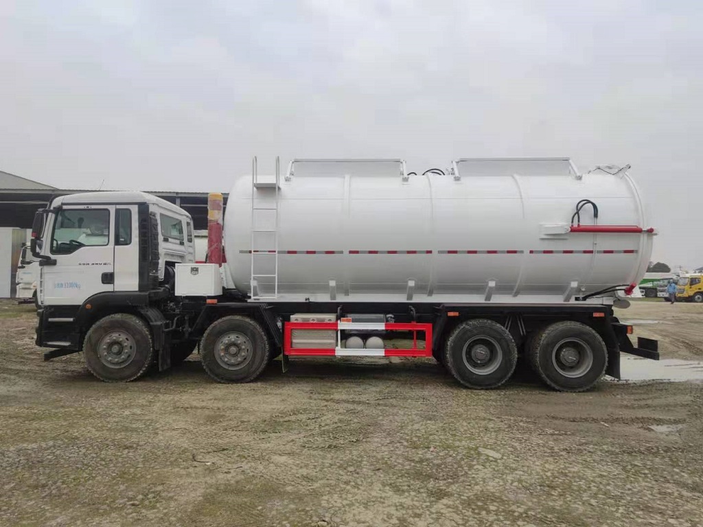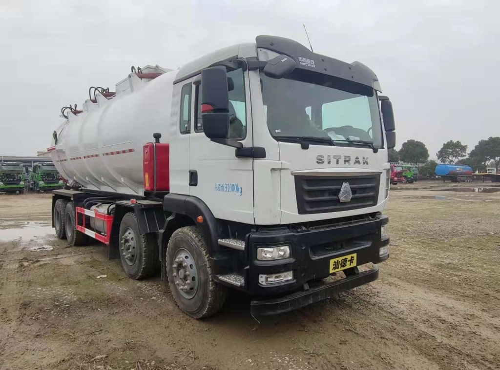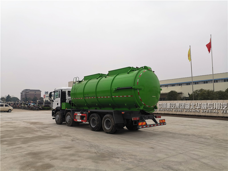 重汽汕德卡國六罐式污泥運輸車,采用重汽汕德卡國六前四后八底盤,德國曼340馬力,