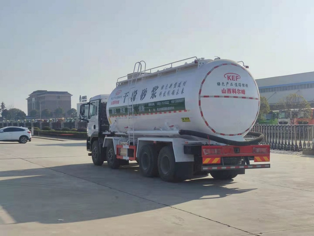 國六重汽汕德卡干混砂漿運輸車,采用國六前四后八汕德卡底盤,德國曼340馬力發動機,