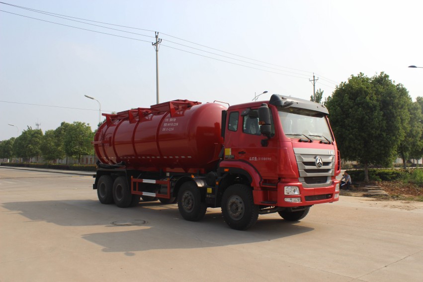 重汽豪瀚前四后八吸污車SCS5310GXWZZ,罐體有效容積:20.4立方米,運輸介質:液態(tài)污物,密度:860千克/立方米;