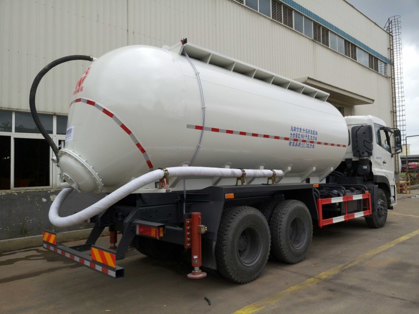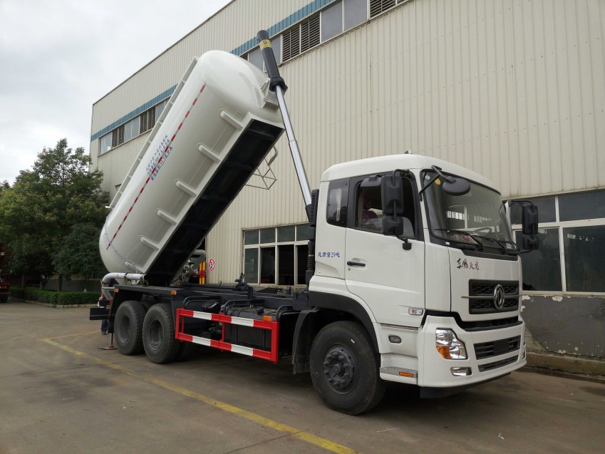 東風天龍舉升式國五干混砂漿運輸車,運輸品名:干混砂漿配料熟石灰粉,密度:630千克/立方米.罐體有效容積19.6立方米