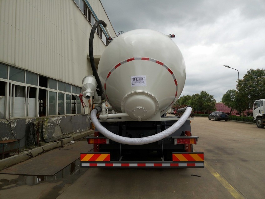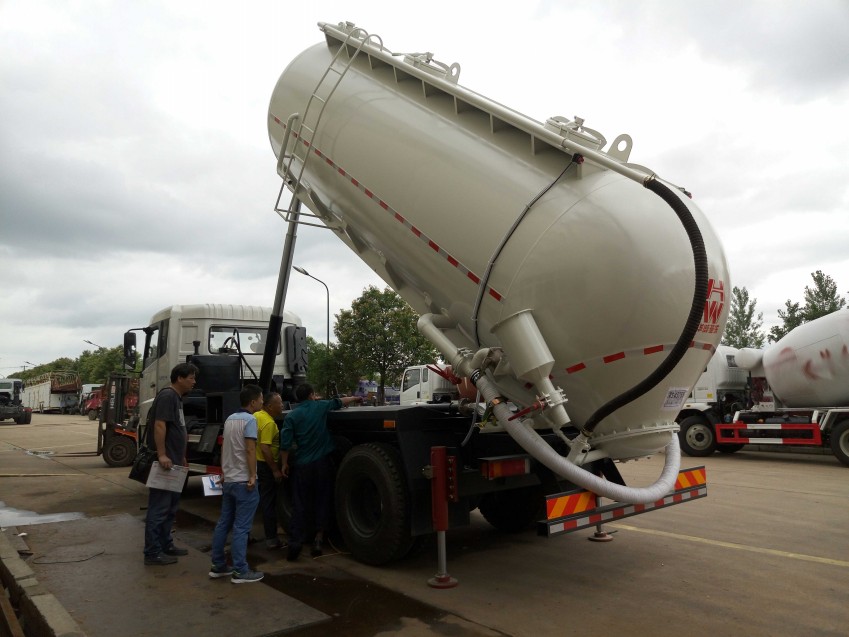 干混砂漿運輸車基于顆粒狀物質的散裝運輸而研之成的,分為臥式和舉升兩種。它將經過專業生產、按比例配置好的干混砂漿通過干混砂漿運輸車運輸到建筑施工現場,應用氣力輸送的方式將干混砂漿送到專用的砂漿罐內,在現場只需加水混合,就可以進行墻面等建筑工程的施工,避免現場攪拌帶來的粉塵、噪音等環境污染,從而改善施工環境,提高施工質量。其關鍵技術是解決干混砂漿運輸和卸料過程中產生的離析問題,保證干混砂漿的質量。