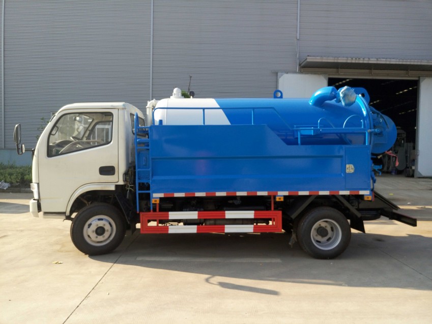 國五東風多利卡藍牌清洗吸污車SCS5040GQWEV,水罐罐體有效容積:2立方米,運輸介質:水,密度:1000千克/立方米,罐體外形尺寸(長×直徑)(mm):1500×1200.吸污罐罐體有效容積:4立方米,運輸介質: 液態污物,