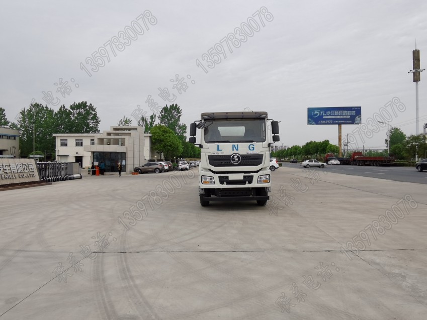 天然氣LNG干混砂漿運輸車,采用陜汽德龍LNG底盤,濰柴336馬力國六B排放標準,