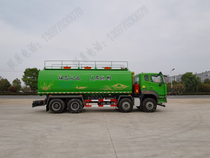10檔變速箱,12噸后橋。罐體容積26方,前頂自卸,尾部蝶閥氣動打開。