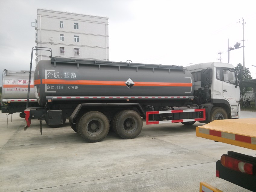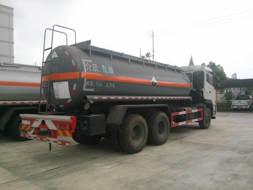 湖北潤力專用汽車有限公司東風天龍后八輪鹽酸運輸車,罐體有效容積:12.8立方米; 介質: 鹽酸或次氯酸鈉溶液,類項號:8類