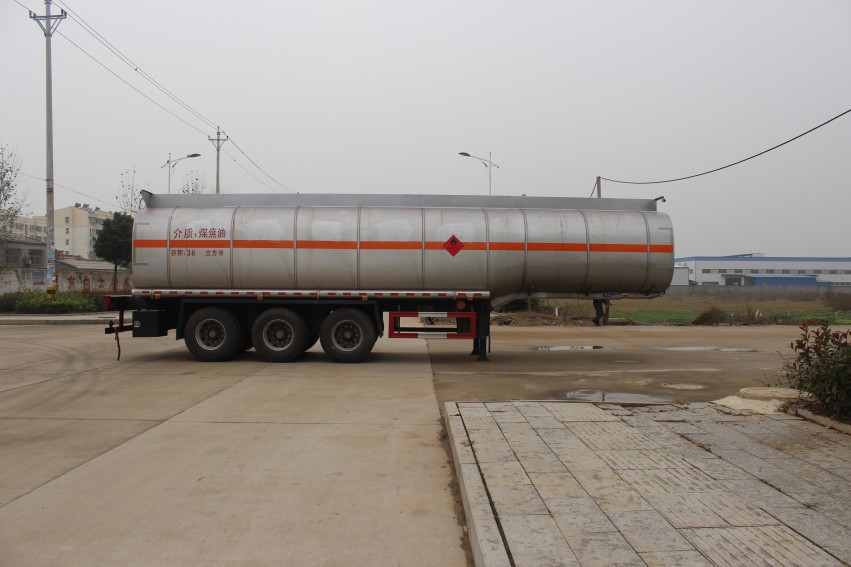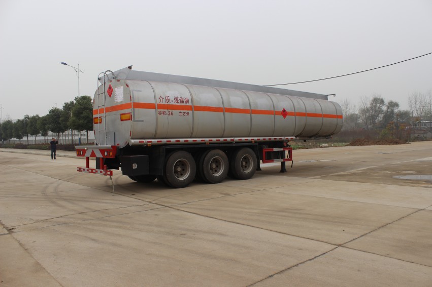 湖北潤力專用汽車有限公司煤焦油運輸半掛車,罐體有效容積為36立方米,運輸介質為煤焦油,類項號3類.